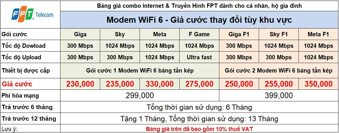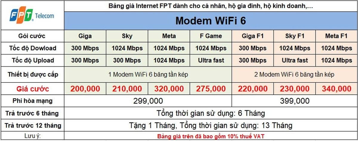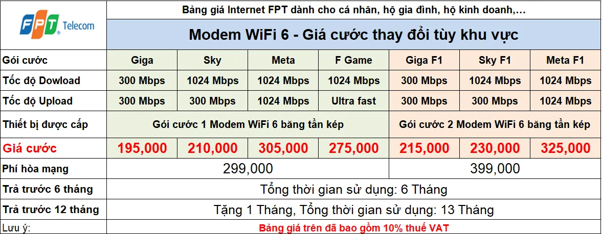 Gói 150Mbps sử dụng công nghệ modem wifi 6 đã phủ sóng 100% ở Quận, còn ở Huyện sẽ có 2 mức giá 175K sử dụng wifi 5 và 190K sử dụng wifi 6.